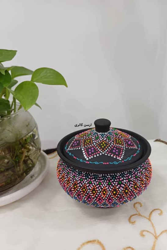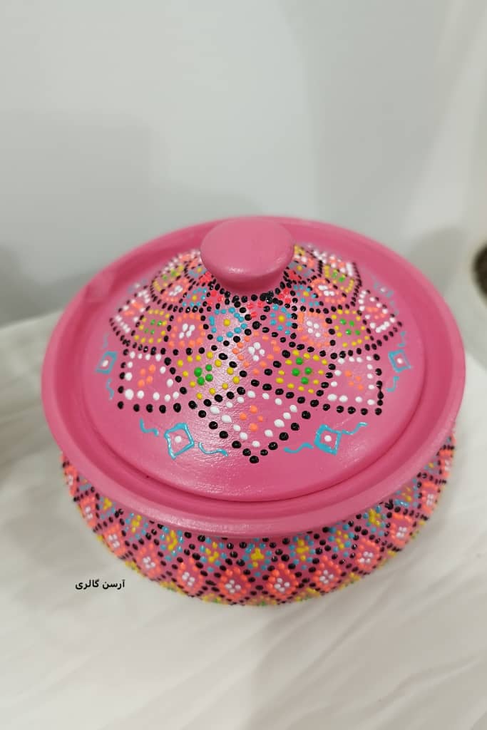 قندون گرد نقطه کوبی سفالی دست ساز(کوچک،متوسط،بزرگ)