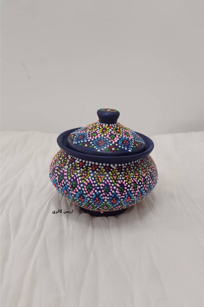 قندان نقطهکوبیشده نه فقط برای قند، بلکه برای نگهداری شکلات، نبات یا حتی گیره و ریزهکاریهای دکوری هم به کار میاد و همیشه یه حس خوب و منحصربهفرد به فضای خونهات میده.