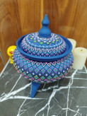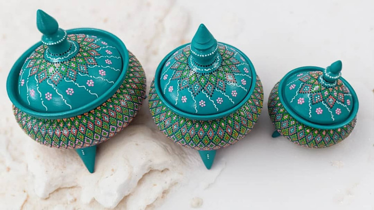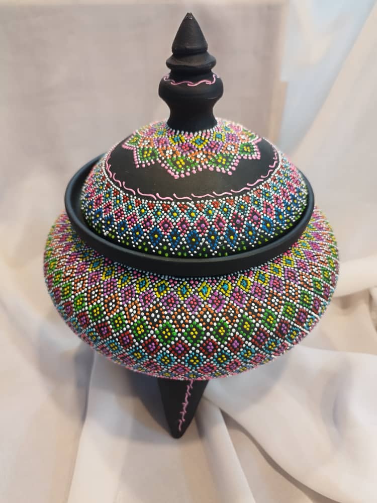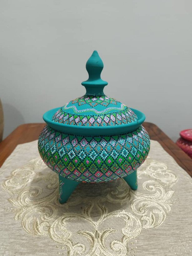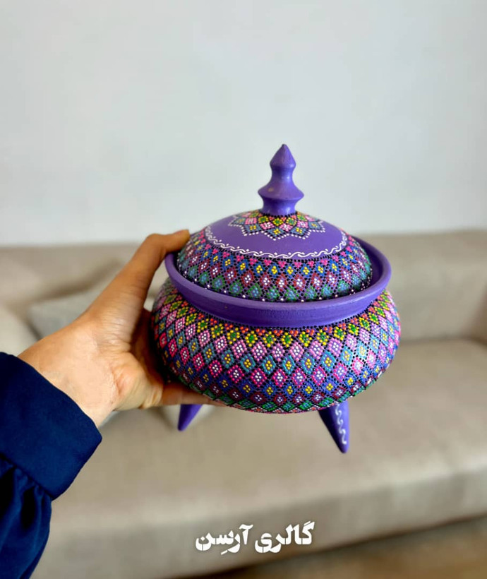 جنسش سفاله و بعد از رنگآمیزی و نقطهکوبی، کاملاً ضدآب و قابل شستوشو شده، پس میتونی با خیال راحت توش شکلات، آجیل یا حتی شیرینی بذاری و هم برای پذیرایی و هم دکور عالیه. طرحهای دستساز و رنگهای شادش، حس هنر و انرژی مثبت رو به خونهت میاره و برای هدیه دادن هم گزینه خیلی خاص و چشمنوازیه.