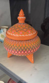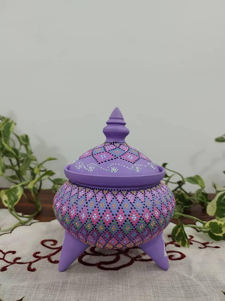 شکلاتخوری سه پایه نقطهکوبیشده یه ظرف شیک و خاصه که روی سفال خامش با تکنیک نقطهکوبی طرحهای جذاب و رنگی کار شده. این ظرف سه تا پایه داره که باعث میشه هم ظاهر متفاوت و زیبایی داشته باشه، هم روی میز کاملاً ثابت و بدون لق خوردن بمونه.