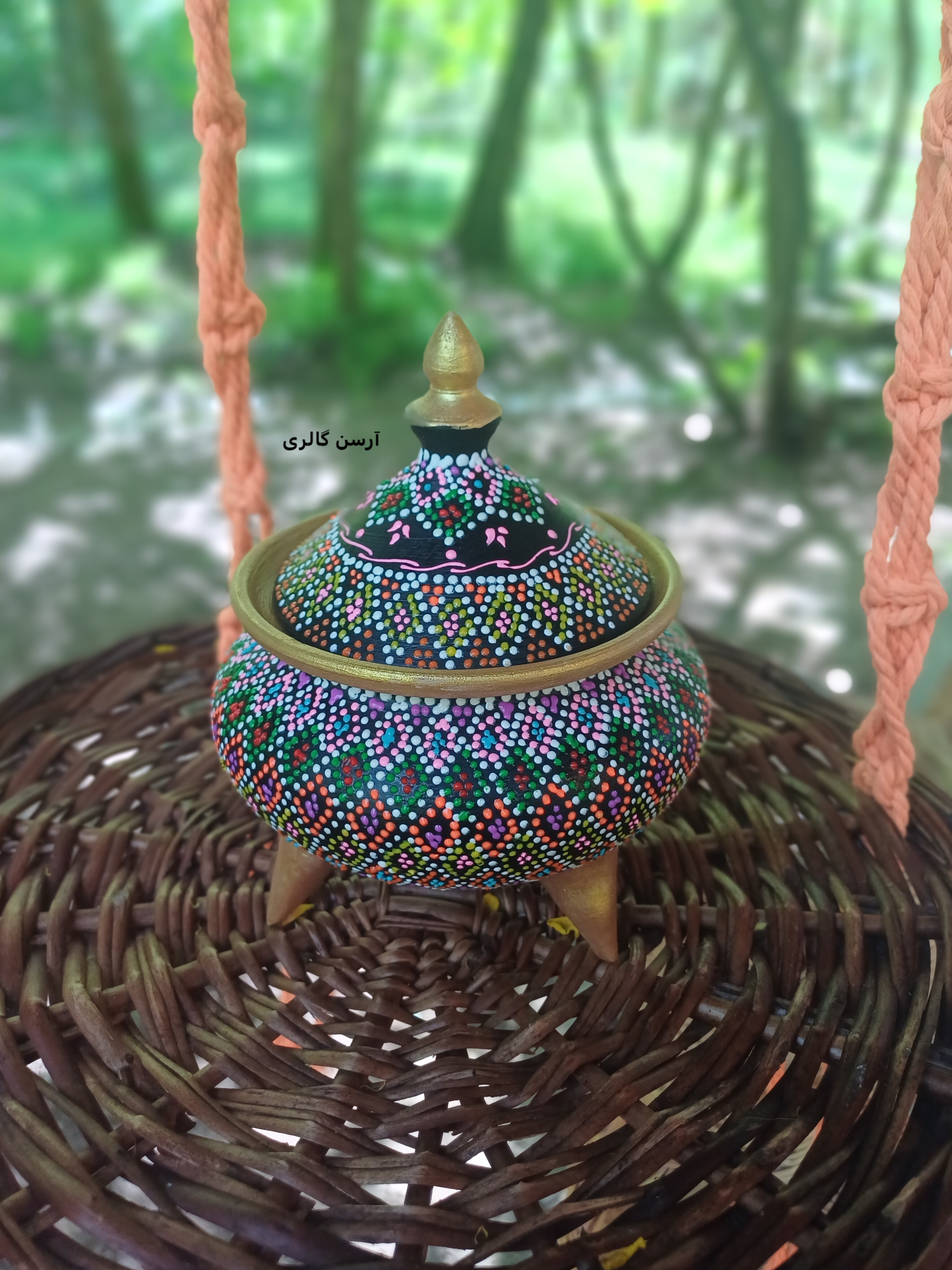 قندان نقطهکوبی شده یه ظرف جمعوجور و خوشگل برای نگهداری قندکه با هنر دست، روش طرحهای رنگی نقطهای کار شده. این قندانها با ترکیب رنگهای شاد و طرحهای خاص، هم حال و هوای سنتی دارن، هم یه حس مدرن و هنری به سفرههاتون میدن. چون ضدآب و قابل شستشو هستن، هم برای مصرف روزمره عالیان، هم میتونن یه انتخاب خاص برای دکوری و هدیه باشن.